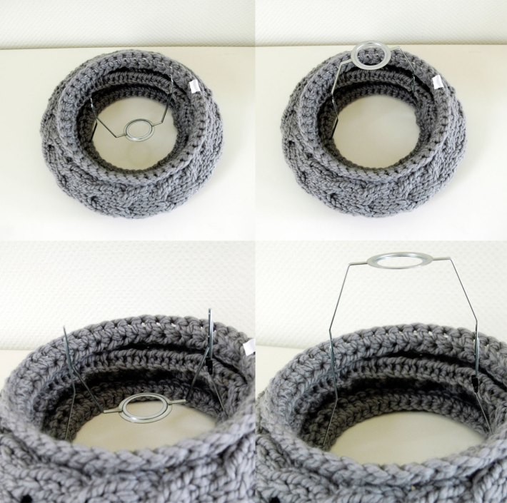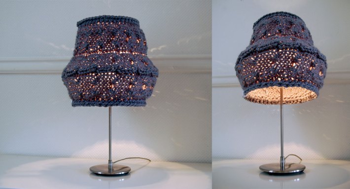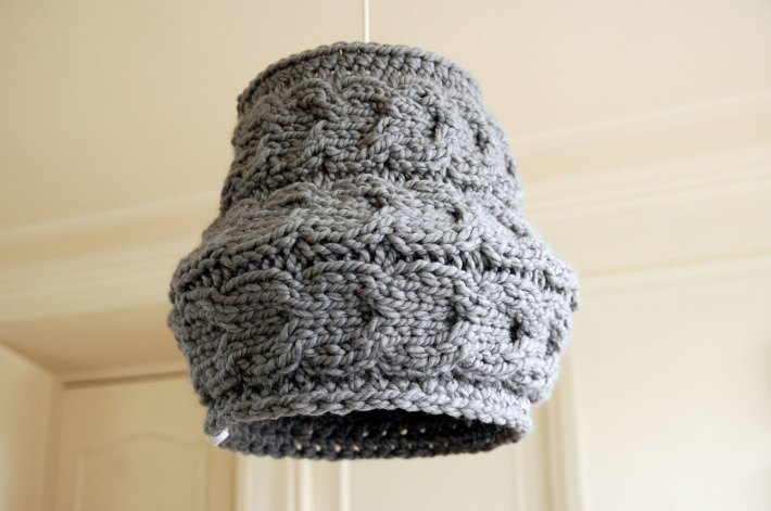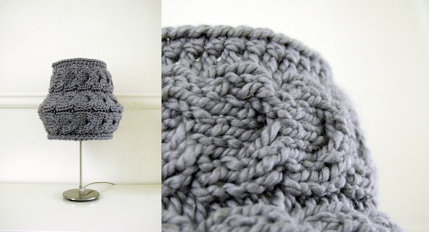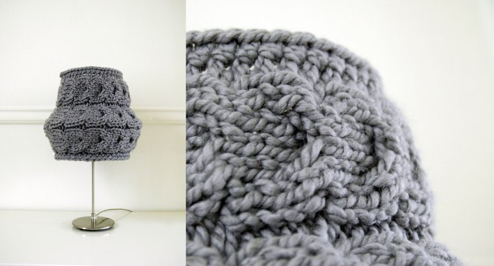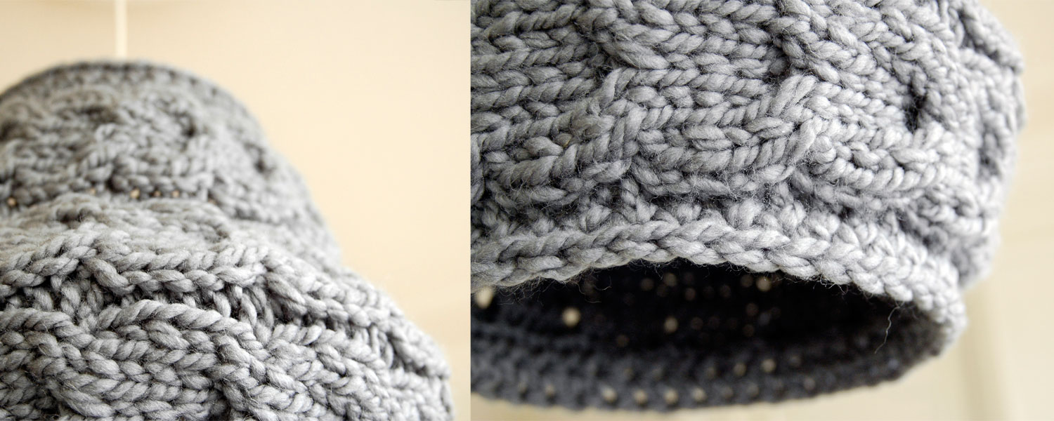 Unique cable knitted lampshade in versatile and always on time grey color. Designed as a multi-purpose: standing or pendant.