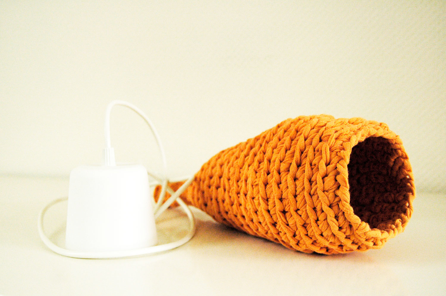 Fashionable. Unique. Crocheted pendant lamp in modern design.