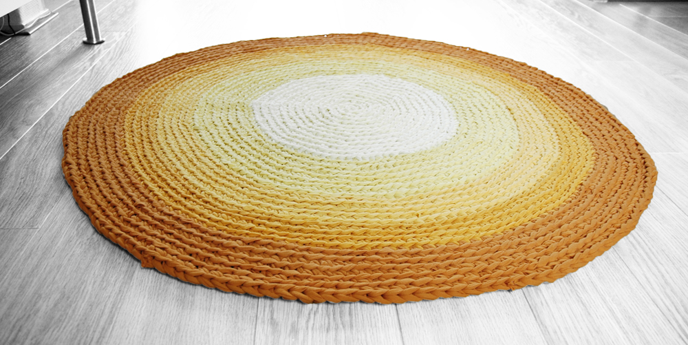The idea of creating carpets, rugs or runners from unnecessary fabric is common and very old. This is part of folklore in many countries. Historically in each village these rugs were made. Mainly on a simple weaving machine but also crocheted.