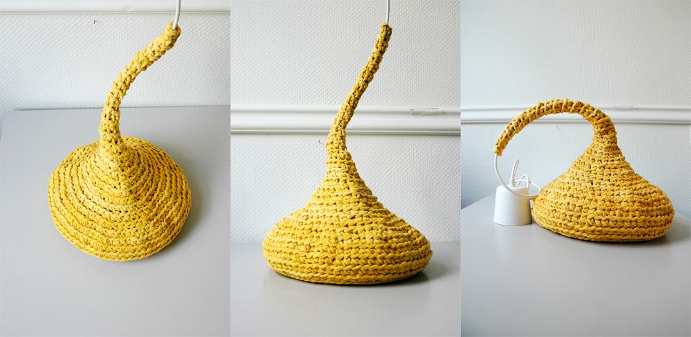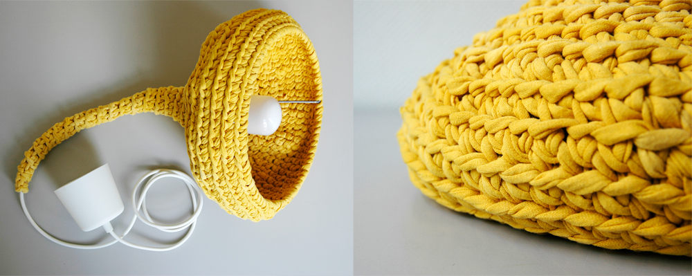 Crochet pendant lamp match pefect to the modern, boho, scandinavian, cottage style or shabby chic interior design. The stylish cozy light warms up modern and industrial interiors.