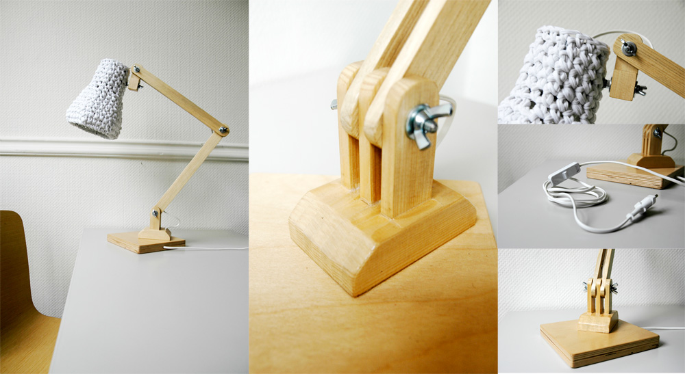 The lamp base is made of pine plywood. All items are hand-polished with sandpaper.
