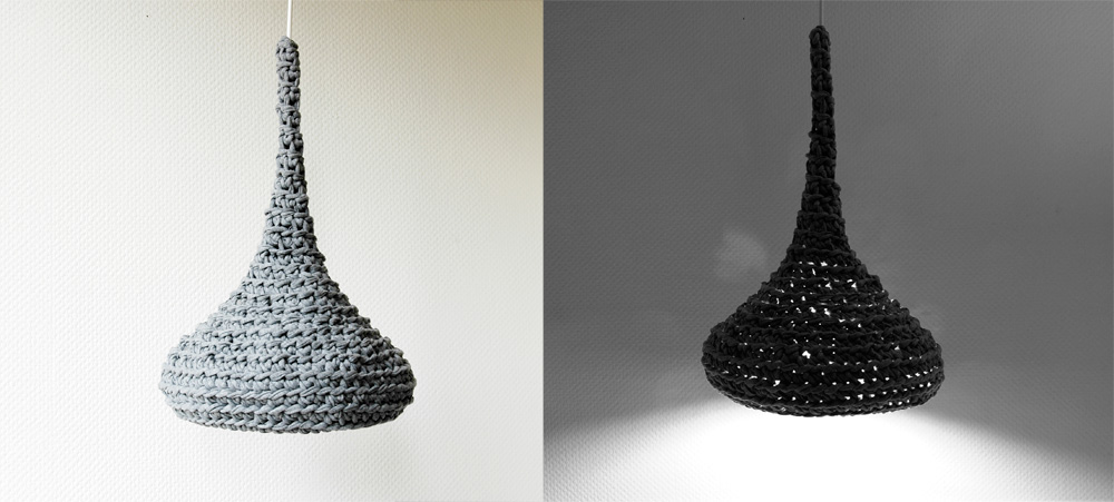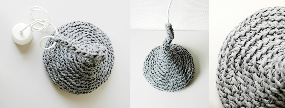 Crochet pendant lamp match pefect to the modern, boho, scandinavian, cottage style or shabby chic interior design. The stylish cozy light warms up modern and industrial interiors.