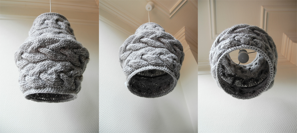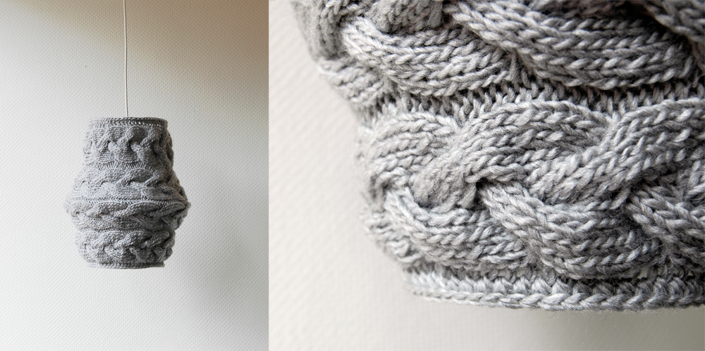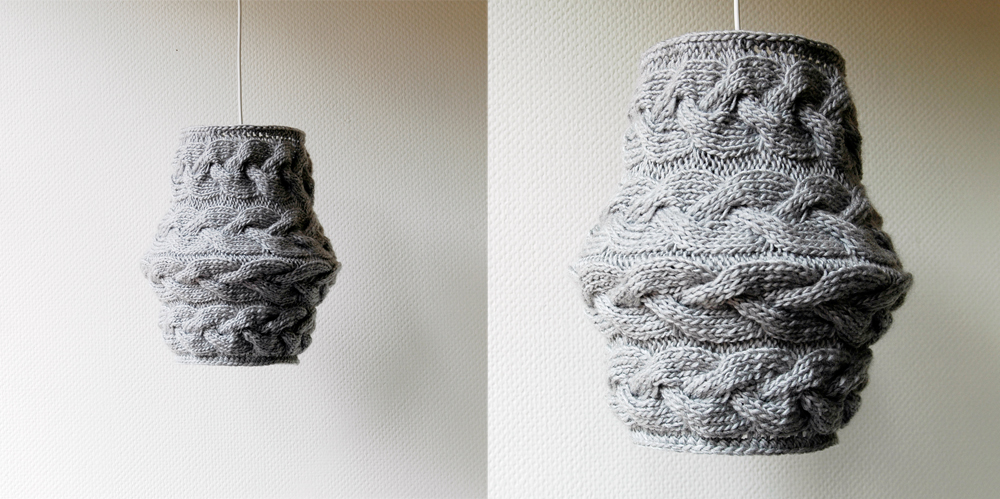 Knitted pendant lamp shade handmade by beautiful braided pattern.