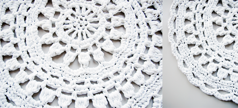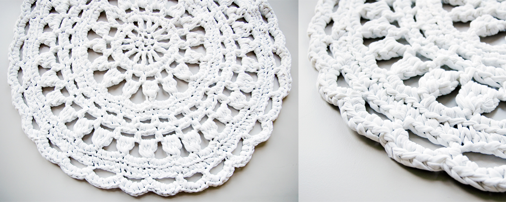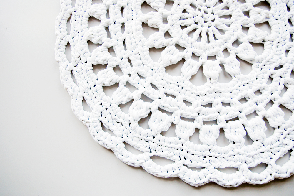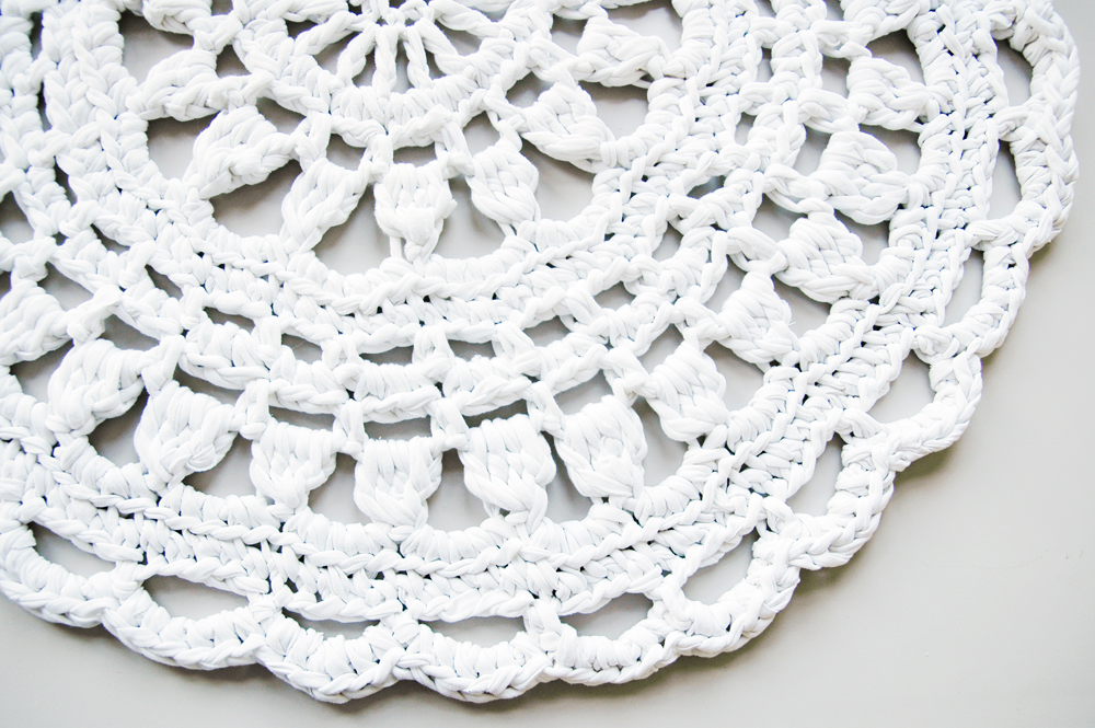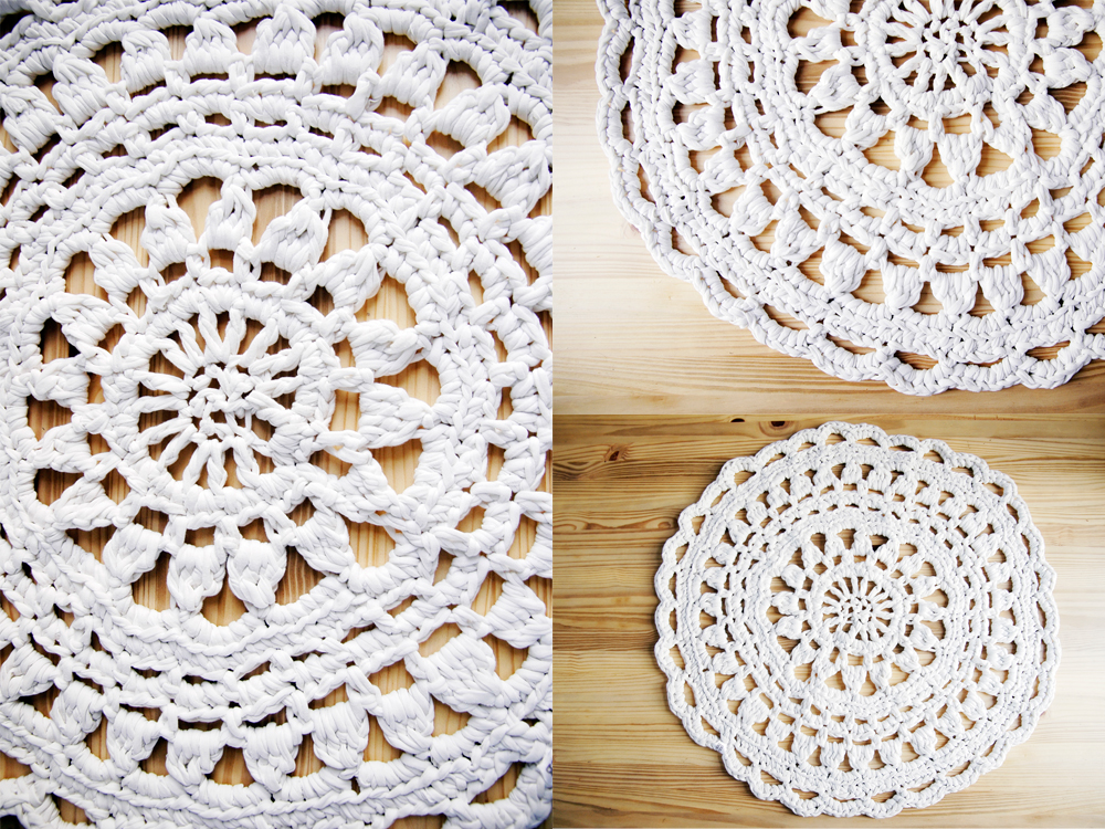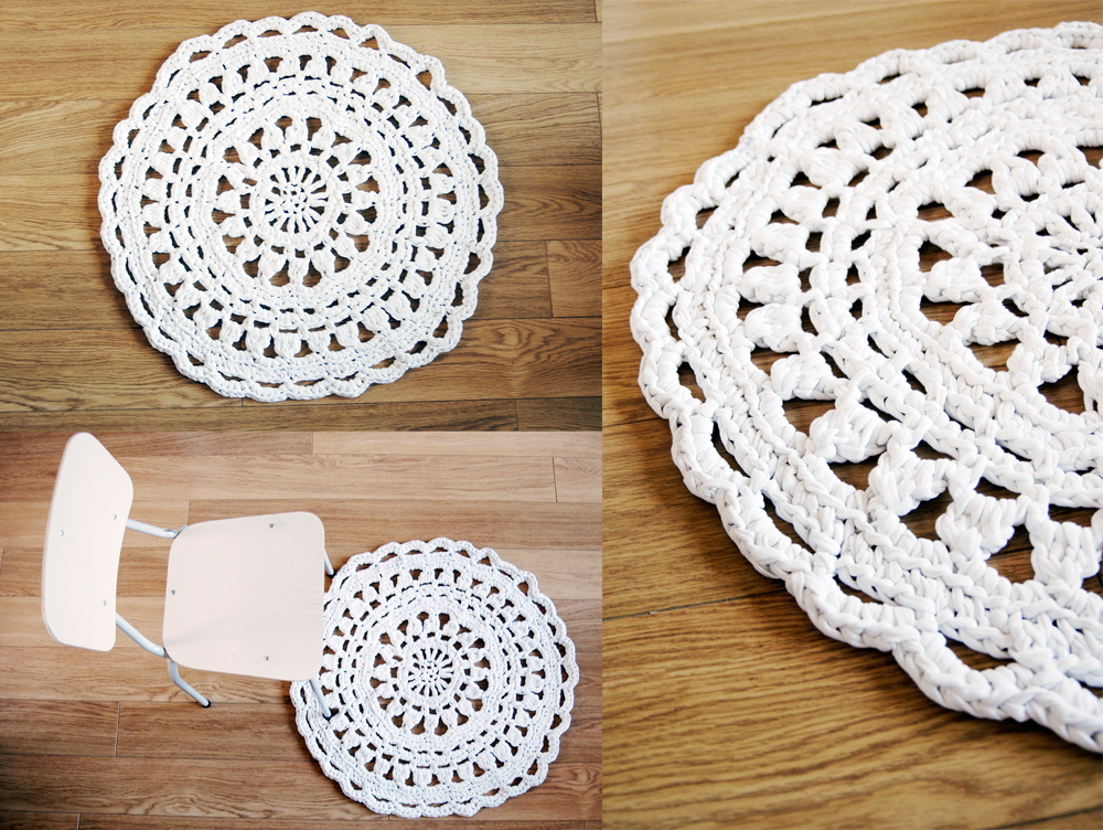 Handmade crochet rug match pefect to the modern, boho, scandinavian, cottage style or shabby chic interior design.