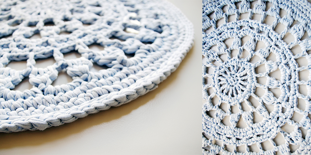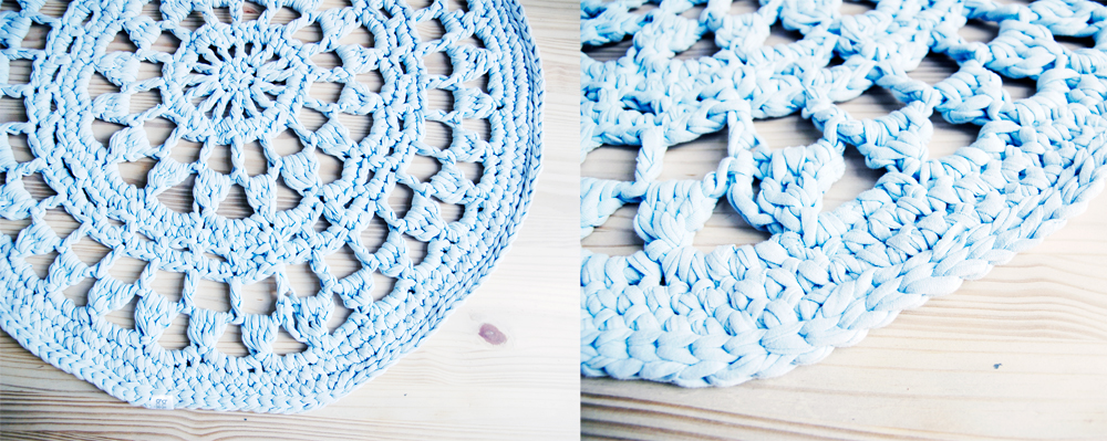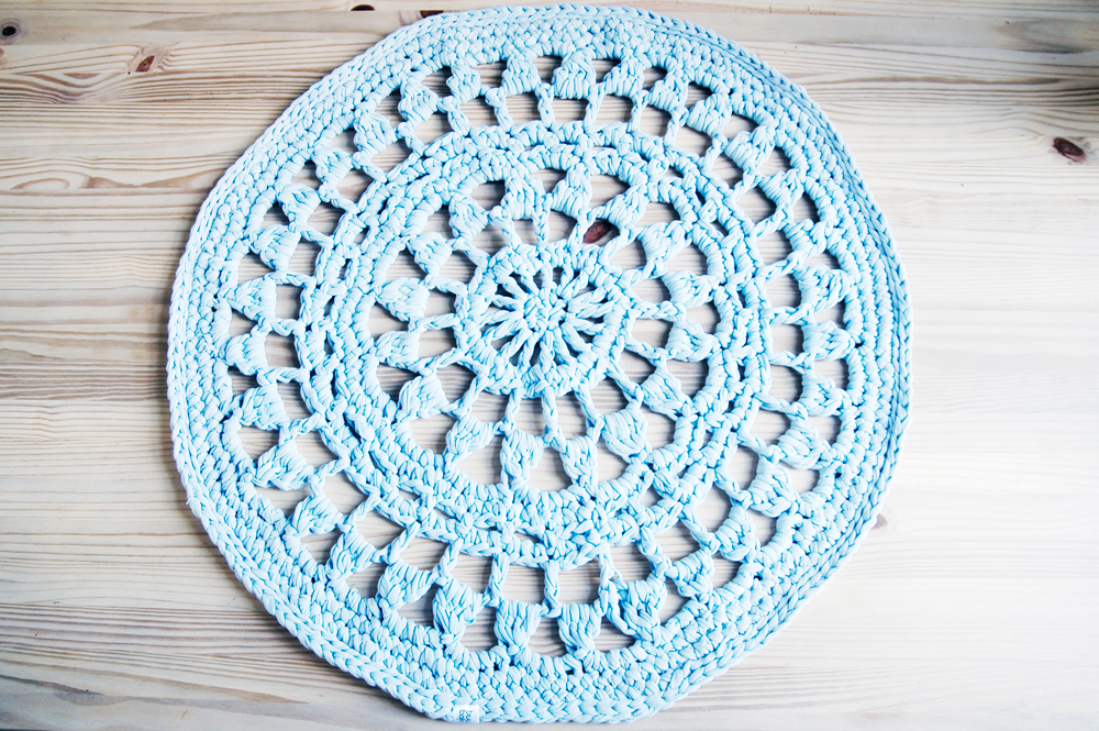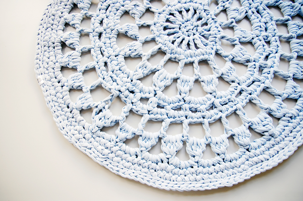 Handmade crochet rug match pefect to the modern, boho, scandinavian, cottage style or shabby chic interior design.