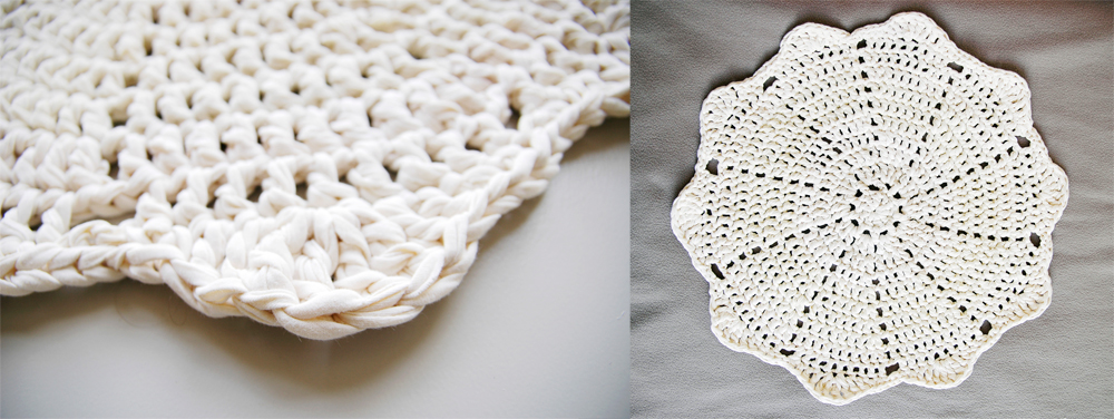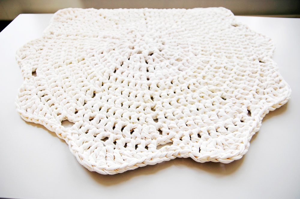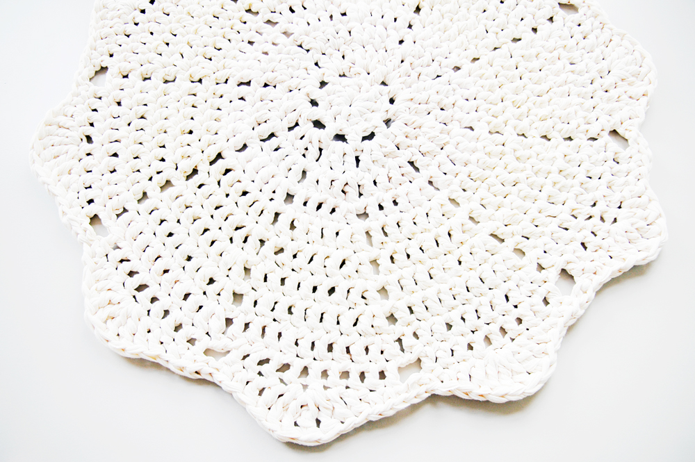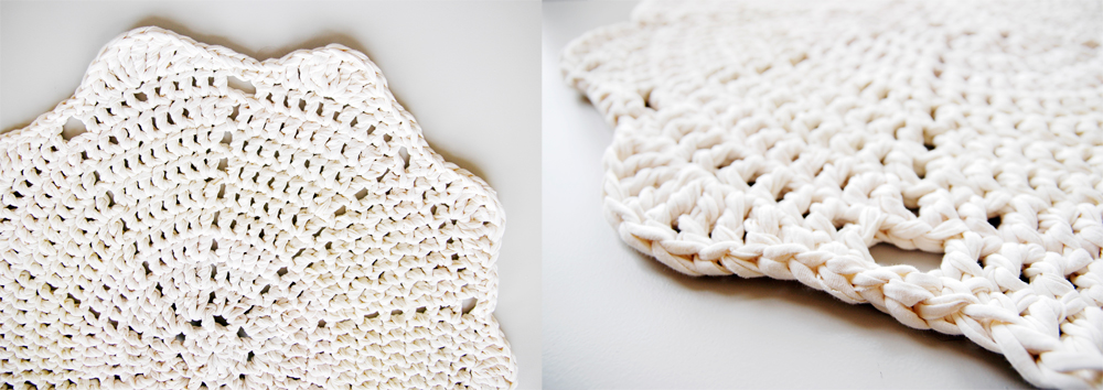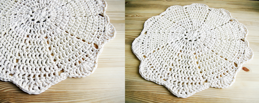 Handmade crochet rug match pefect to the modern, boho, scandinavian, cottage style or shabby chic interior design.