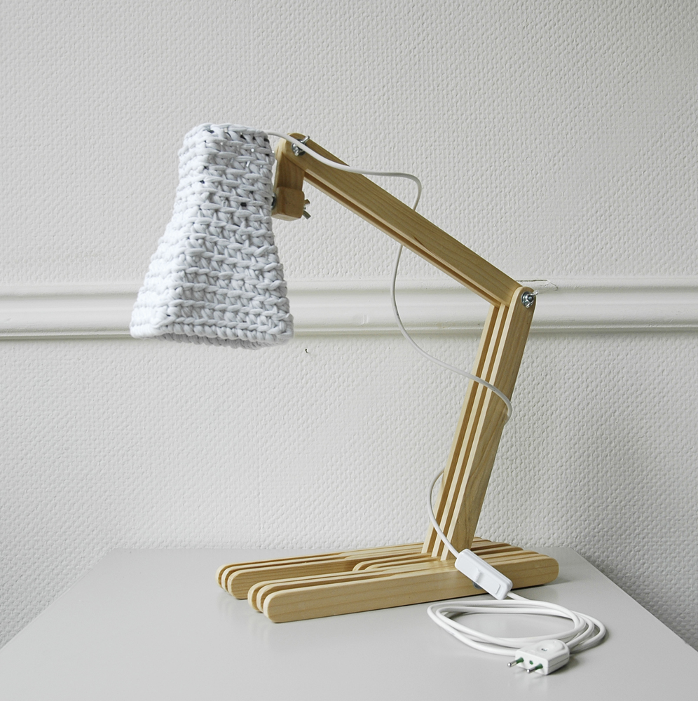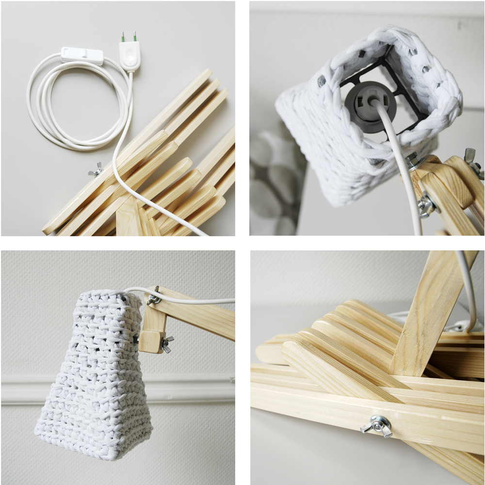 The wooden structure is made of pine slats cutted and polished by hands. Elements of construction (base and shade handle) are made of the same pine strips glued layers. All items are hand-polished with sandpaper.