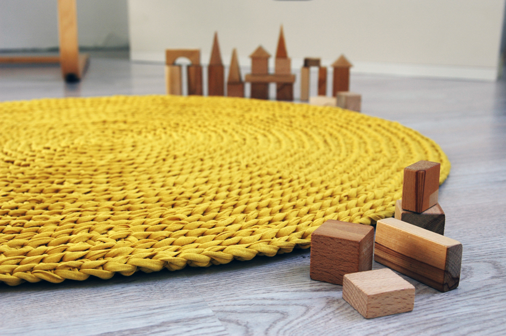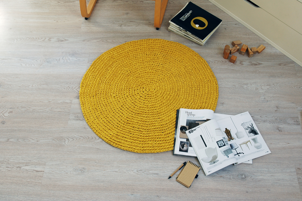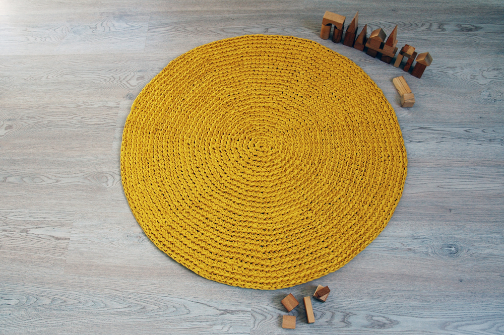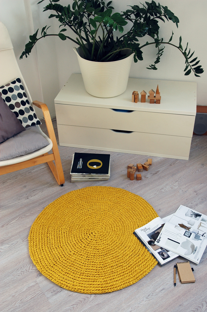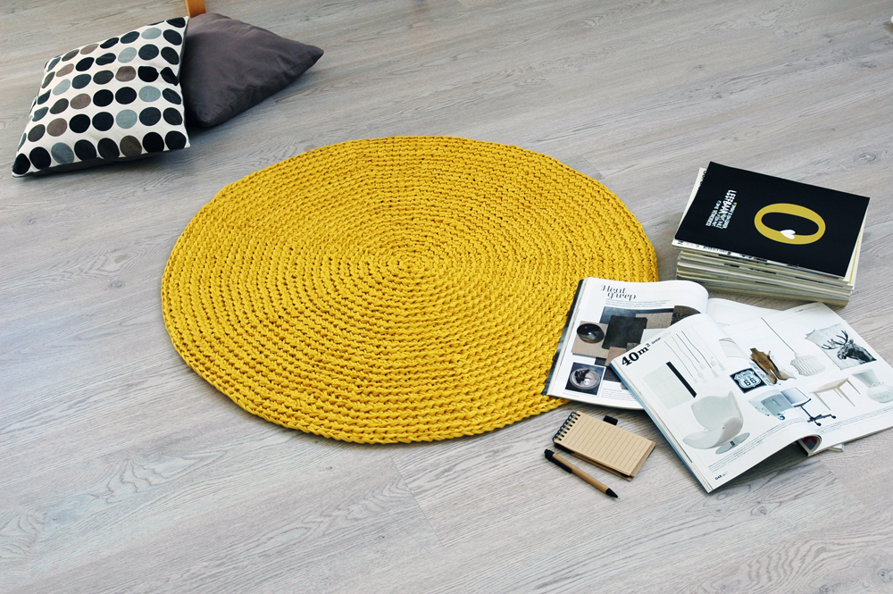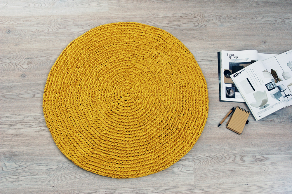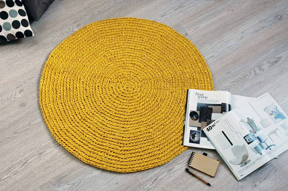 Handmade crochet rug match pefect to the modern, boho, scandinavian, cottage style or shabby chic interior design.