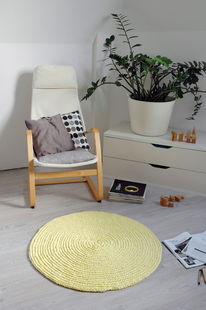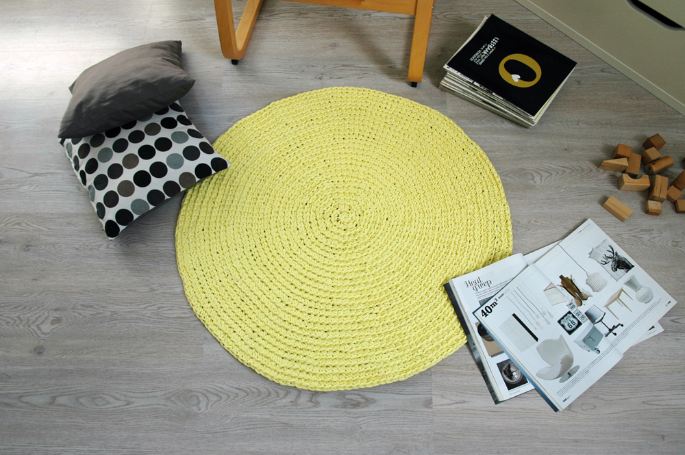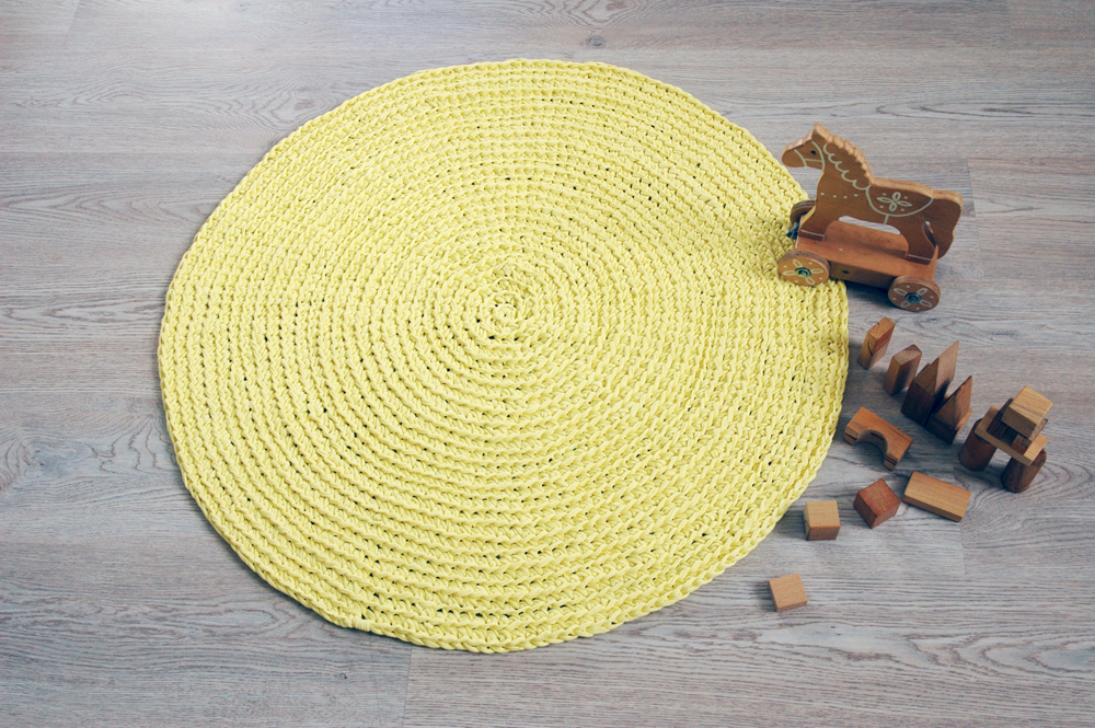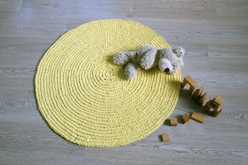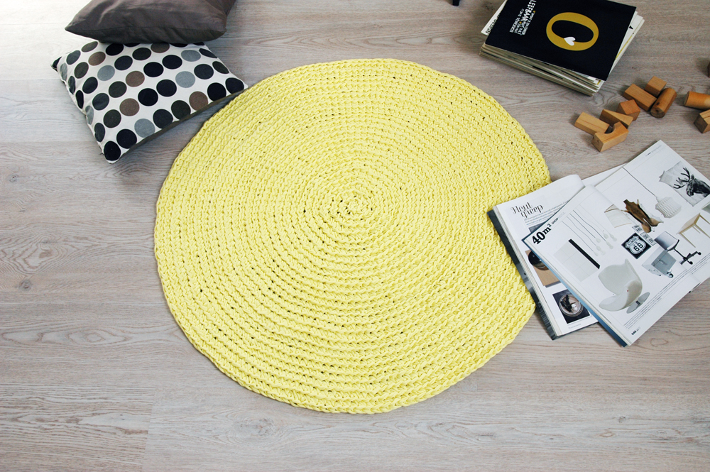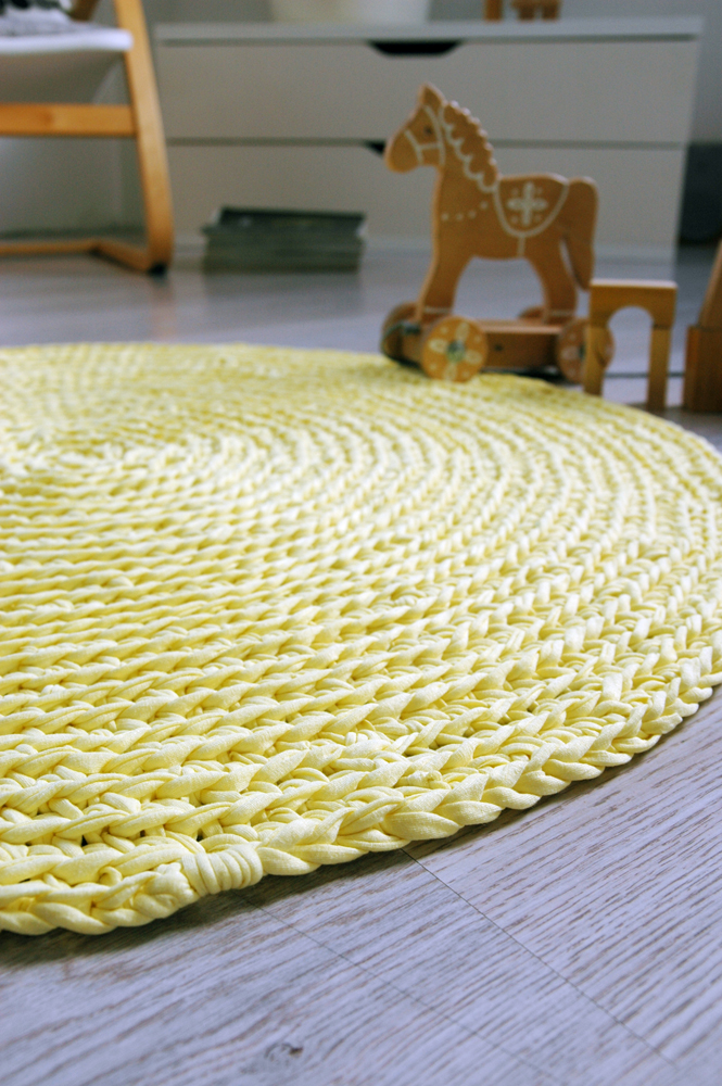 Handmade crochet rug match pefect to the modern, boho, scandinavian, cottage style or shabby chic interior design.