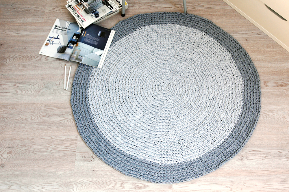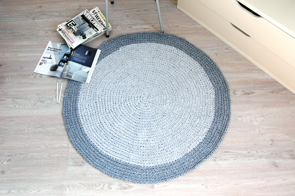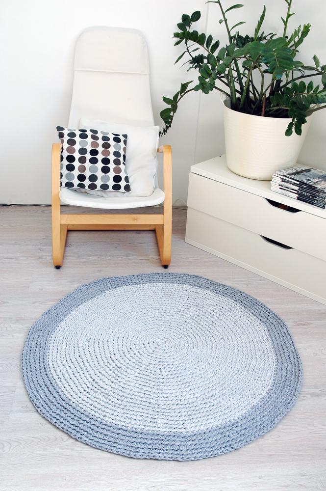Handmade crochet rug match perfect to the modern, boho, scandinavian, cottage style or shabby chic interior design.