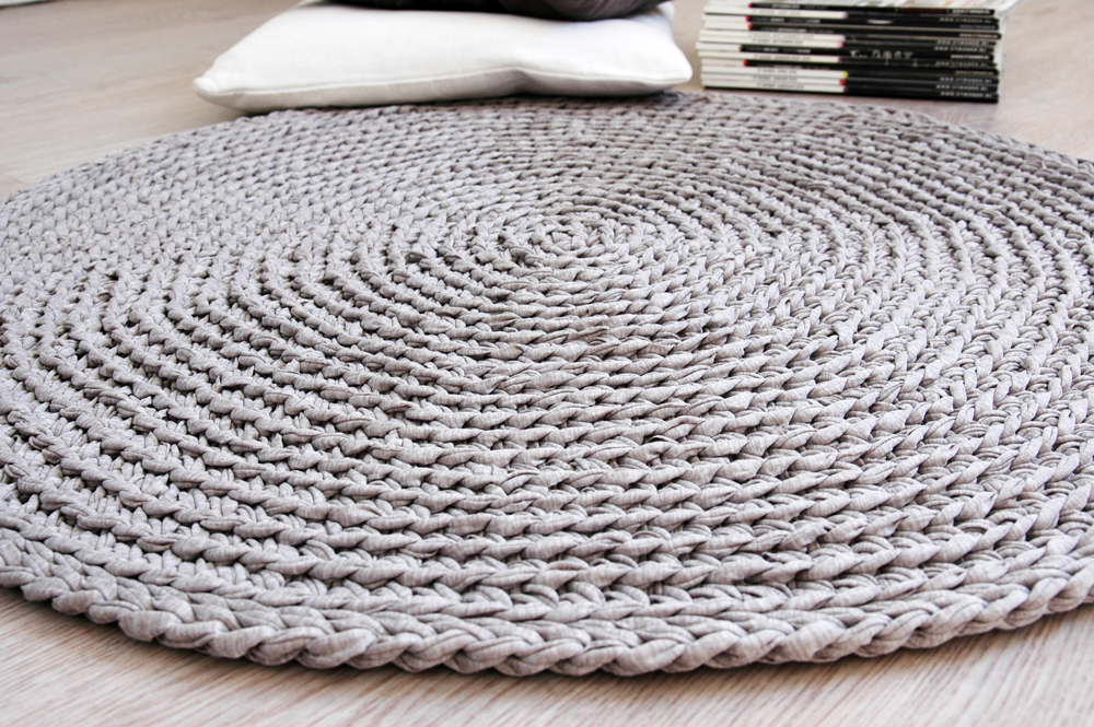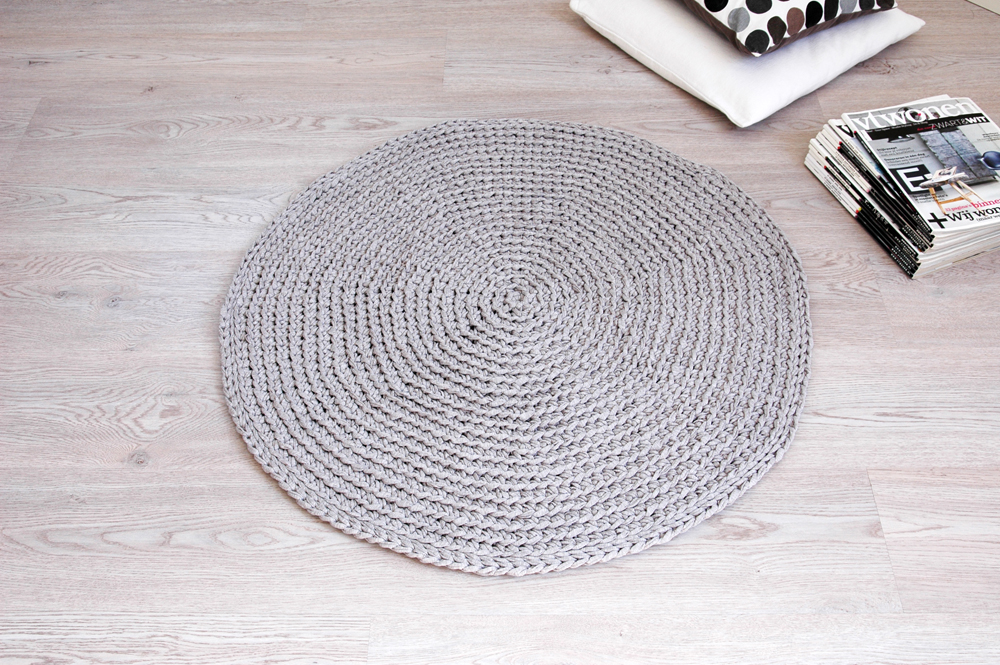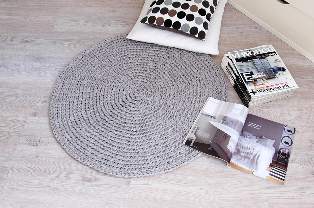 Handmade crochet rug match pefect to the modern, boho, scandinavian, cottage style or shabby chic interior design.